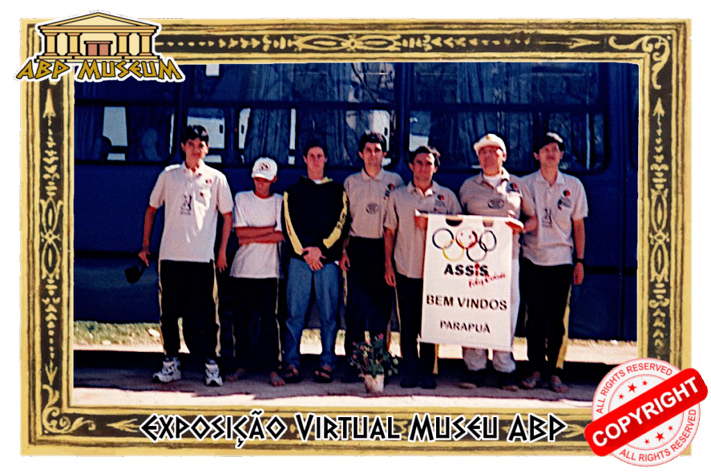 Jogos Regionais de Assis em 1997. Delegação de Damas de Parapuã. E>>D – Marcelo Motoki, José Hélio, André Teco Fernandes, Sidnei Souza, Luciano Ceará, Leonel Conceição e Marco Motoki.