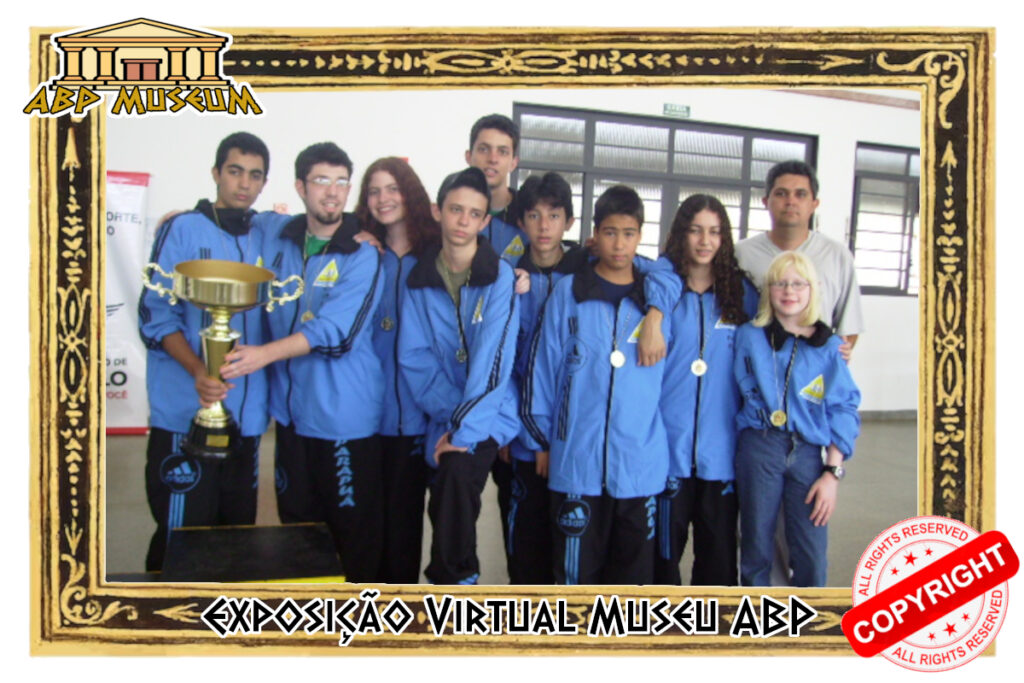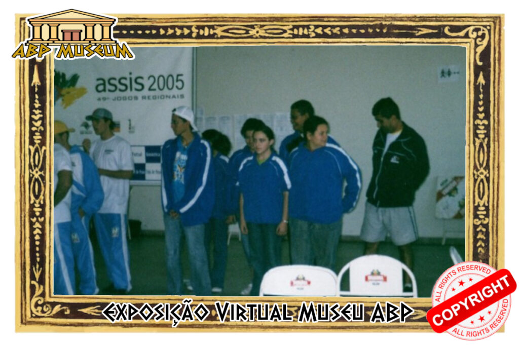 Jogos Regionais 2005 – Equipe esperando o chamado para assumir o pódio. Atletas Diego Fontana, Aline Cavallaro, Thamires Medeiros, Camila Souza, Jaime Ribeiro e Rafaela Medeiros