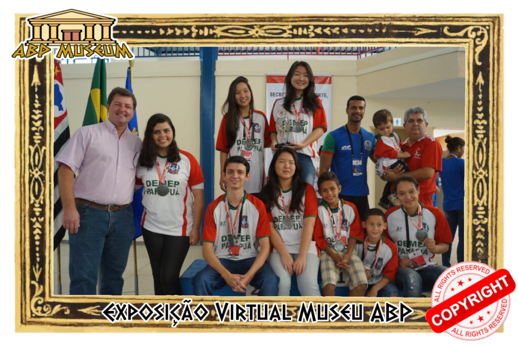 Jogos Regionais 2015 – (E>D) Prefeito Samir Pernomian, Vitória Inara, Vanessa Kaneko, Leila Yamauti, diretor Luiz Fabiano, Eduardo Henrique, Sidnei Souza, Leonardo Parra, Diana Yamauti, Mayan Augusto, Pedro de la Paz e Ariane Alves.
