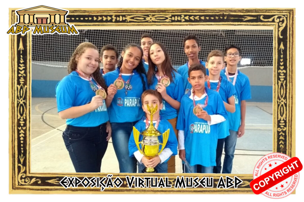Torneio Aniversário de Parapuã 2024 – equipe campeã da categoria até 13 anos feminino. (E>D) professora Ana Paula, Mariana, Maria Júlia, diretor Sérgio Bononi, Lorrane, Isabelly e Alana.