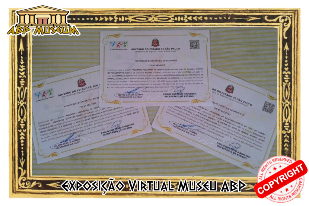 Certificação emitida pela Secretaria de Esportes do Estado de São Paulo a ABP por três projetos aprovados em 2017, mediante benefícios fiscais da Lei Paulista de Incentivo ao Esporte. Foram 16 projetos aprovados pela organização nas esferas governamentais.